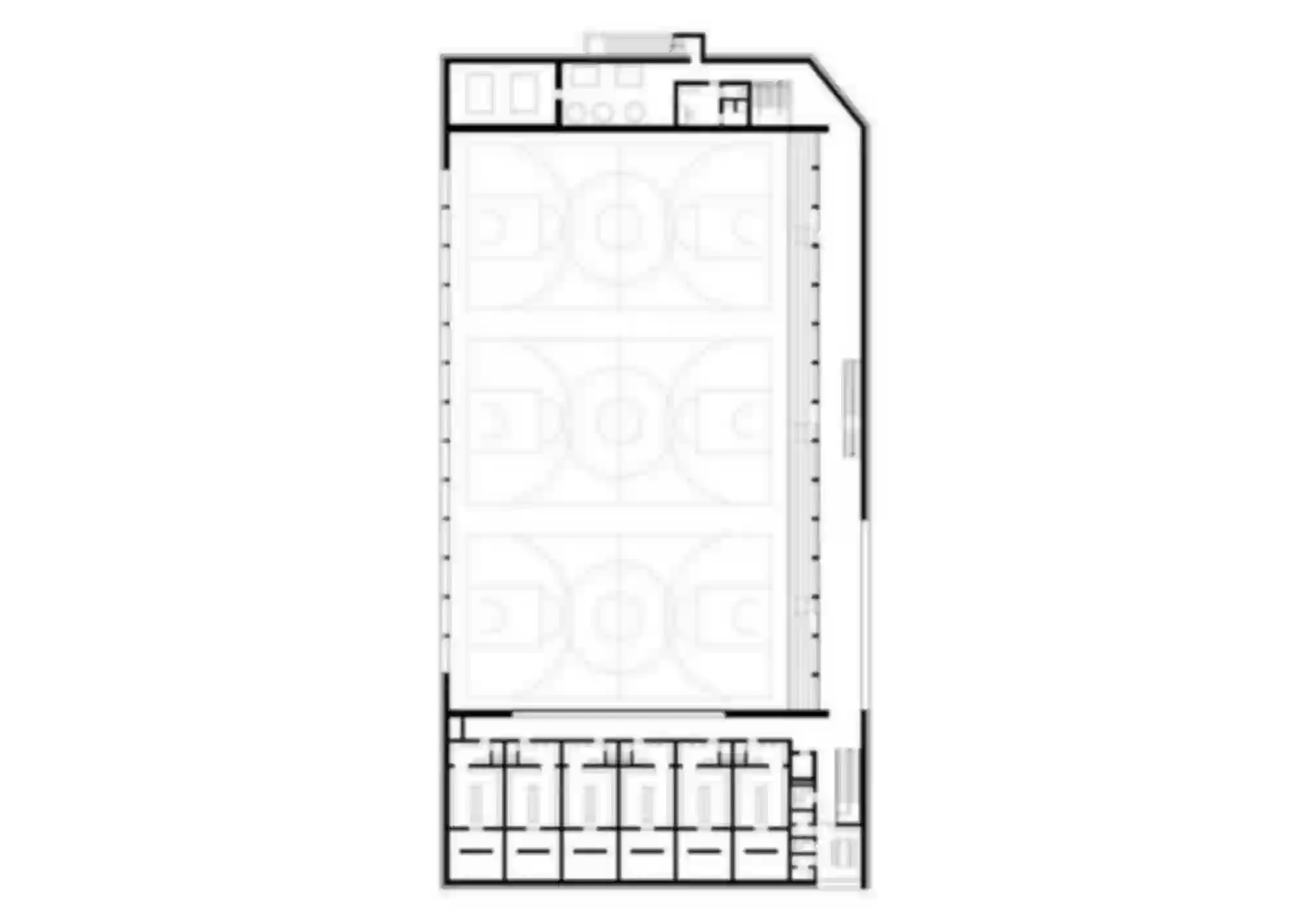 La nouvelle salle de sport triple, située derrière la gare sur le site du complexe scolaire Montreux Est, vient remplacer une salle de gymnastique simple devenue vétuste. La topographie de la parcelle divise le site sur deux niveaux. Logée dans sa partie supérieure, la construction occupe presque la totalité de la surface qui lui est dédiée. Malgré son important volume imposé par le programme, le nouveau bâtiment s’insère dans un environnement morcelé grâce à une stratification ciblée et un jeu d’avancée et de retrait sur la façade de l’entrée. Développé sur deux niveaux et exempt de sous-sol dû à la proximité des deux tunnels de la compagnie du MOB sur lequel il est construit, le bâtiment se veut compact et simplement organisé. Le système constructif est un dialogue entre le béton – le socle - et la construction bois -la charpente de la salle de gymnastique et de la toiture, et une grande partie des façades. Le bardage extérieur, des lamelles entrecroisées et pré-grisaillées naturellement, propose une lecture contemporaine de la construction bois dans un contexte passablement urbain. Le socle du bâtiment, lui, est revêtu de panneaux préfabriqués en béton.