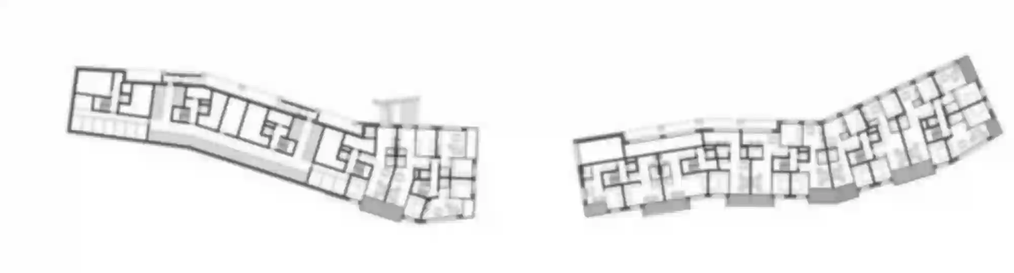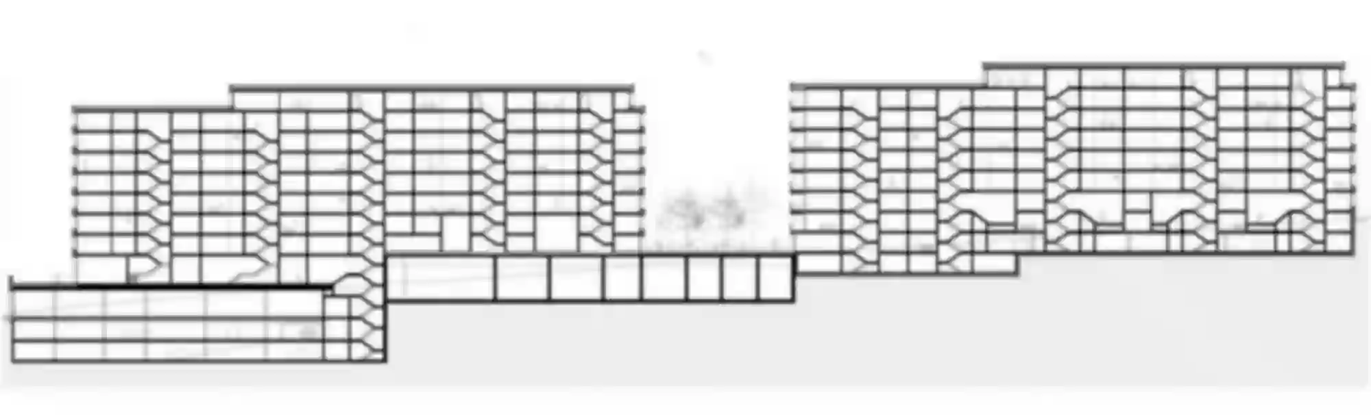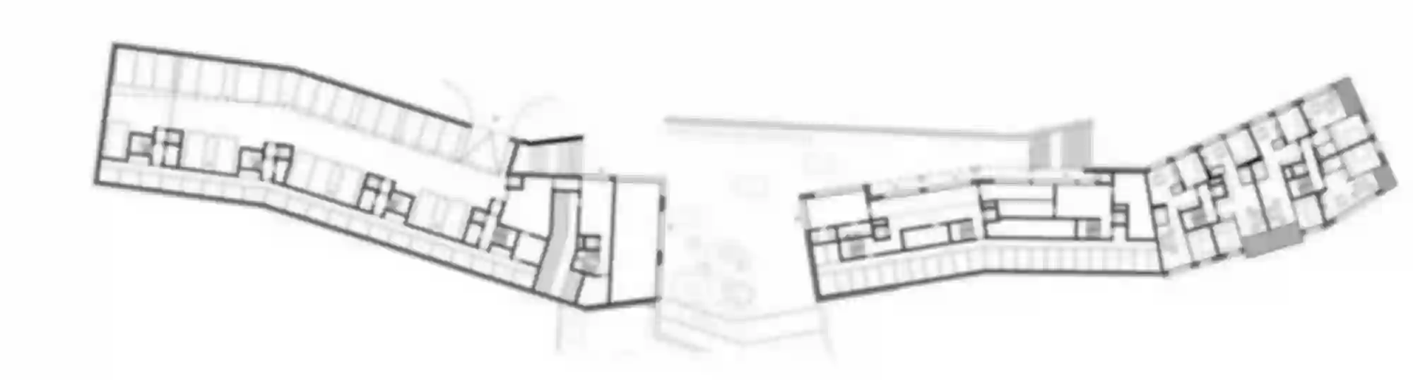Zone résidentielle avec espaces communs, commerce, parking et espaces extérieurs